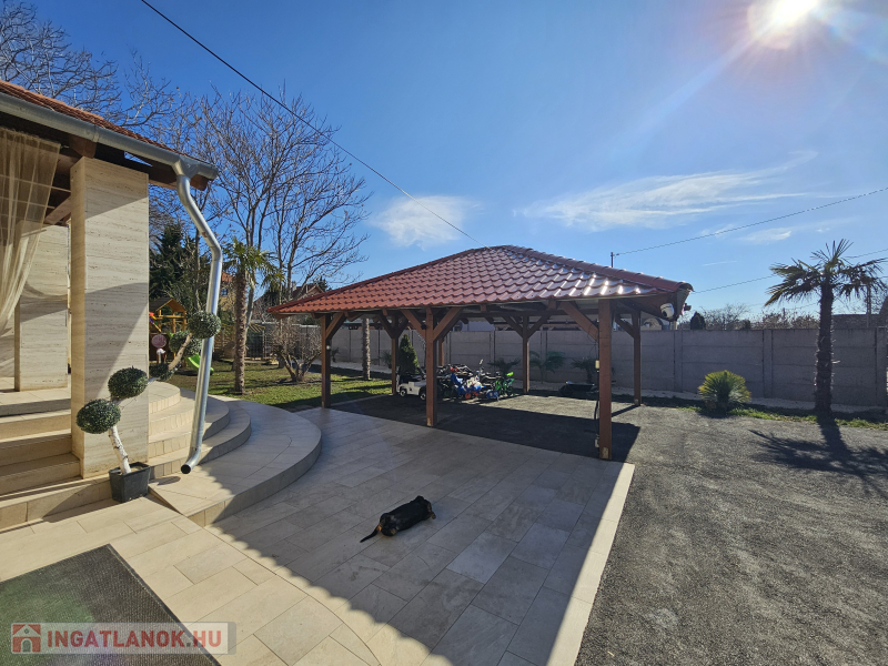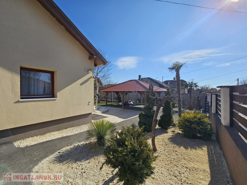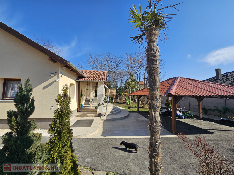 Az épület 717 nm-es összközműves telken található, a kert gyümölcs fákkal,pálmafákkal, cserjékkel beültetett, gondozott!